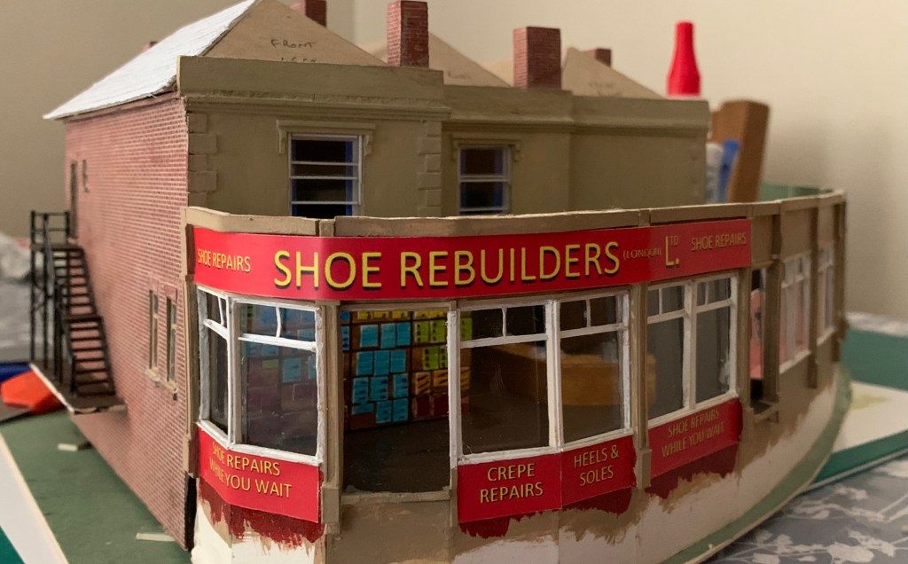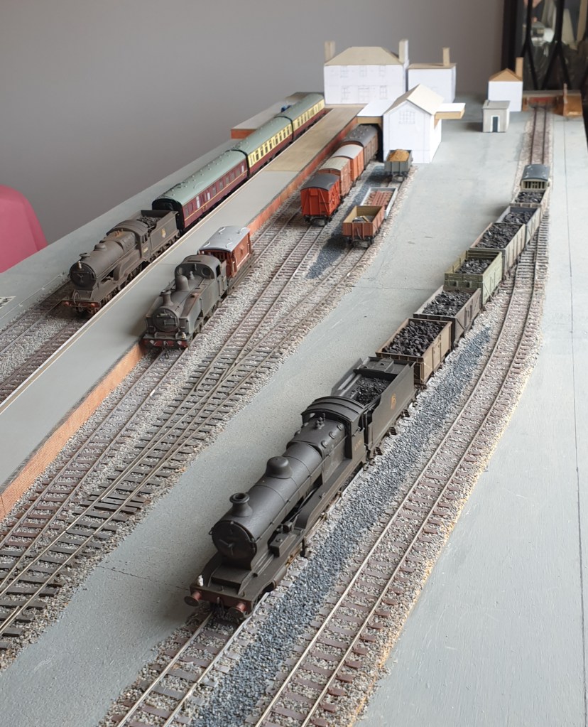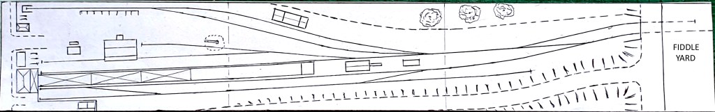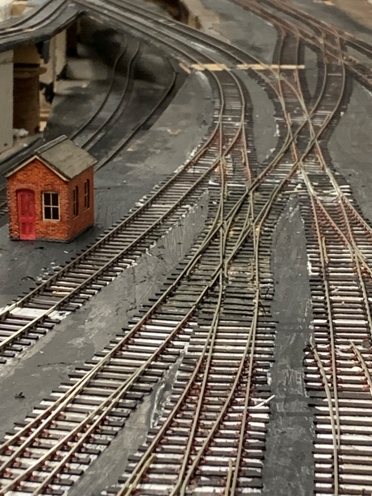 The layout is 16’ x 2’ and is fully wired up and operational. However, you will see from the photographs that there is still some way to go on the scenic side. The white buildings are card mock-ups to check everything will fit where it should and that they form a pleasing picture when viewed together.